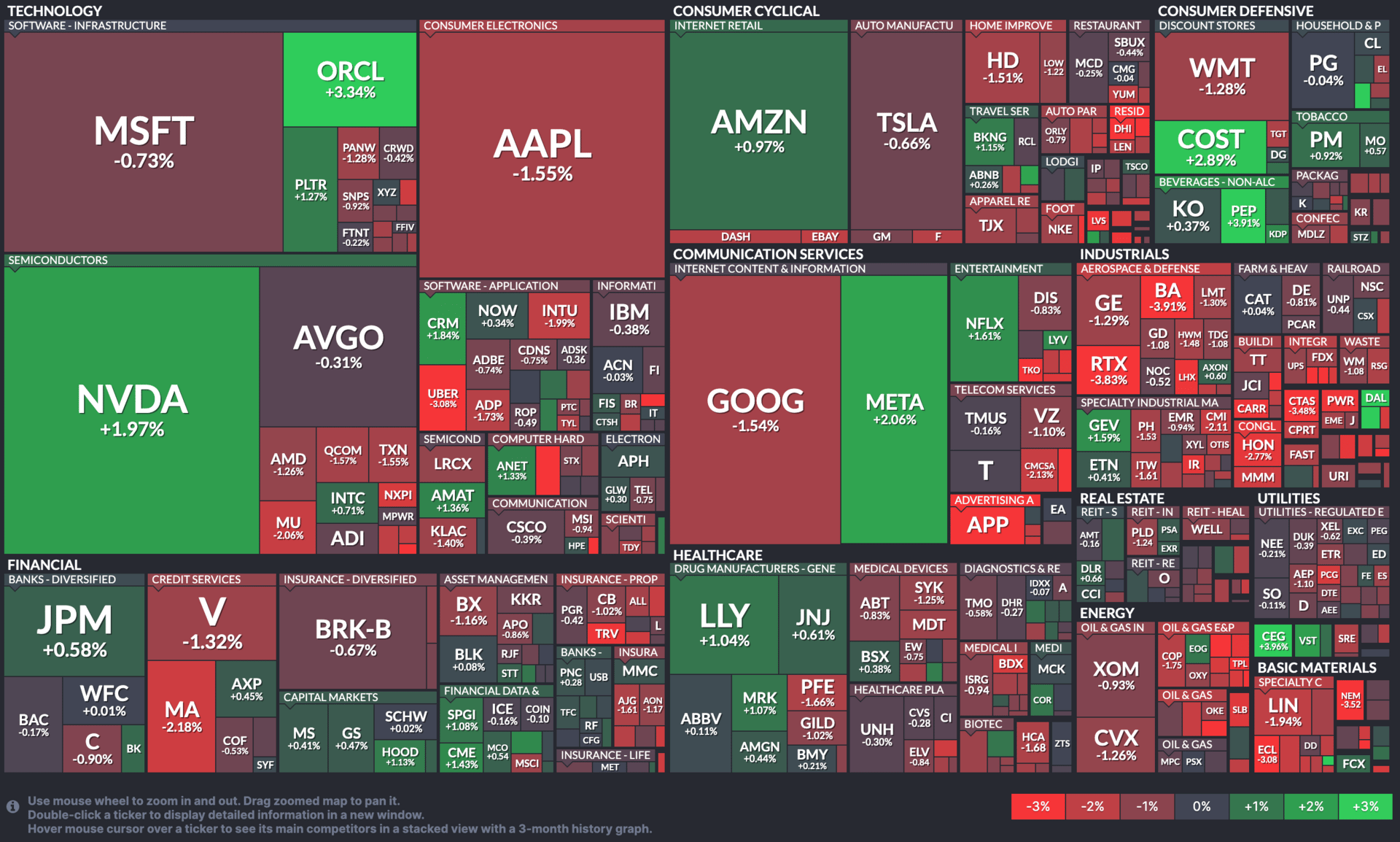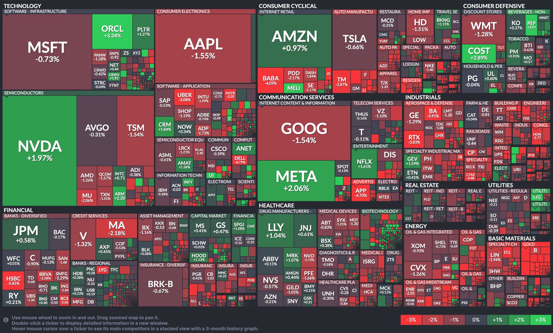 🟥 | US stocks slipped today, with the DJIA leading declines as the S&P and Nasdaq pulled back from fresh highs, pausing gains while the shutdown dragged on.
