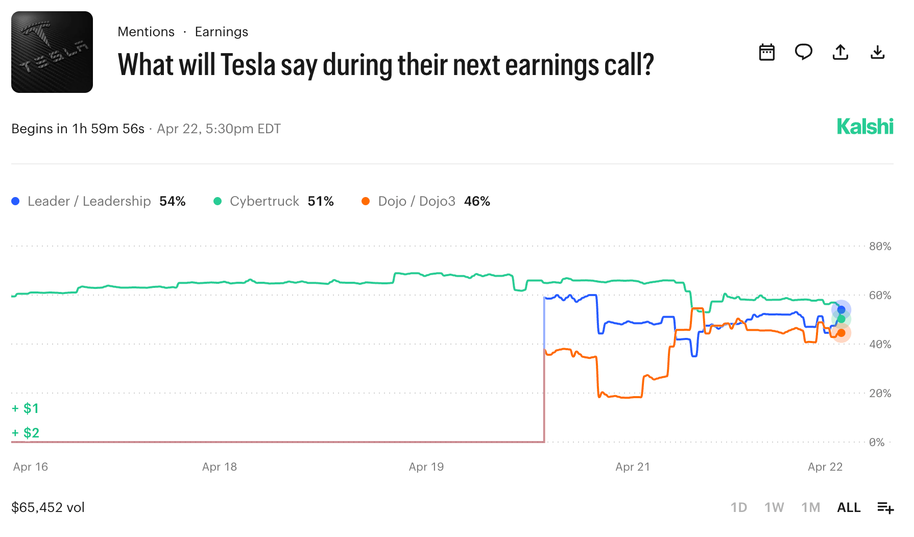 Tesla reports after the close, but Wall Street isn't sweating the numbers. Analysts care more about robotaxi expansion, the new AI5 chip, and Optimus updates. Meanwhile, over at Kalshi, the market movers are even less technical. Traders are pricing which buzzwords Musk actually drops on the call. When earnings become a drinking game, the stock might not be trading on fundamentals…