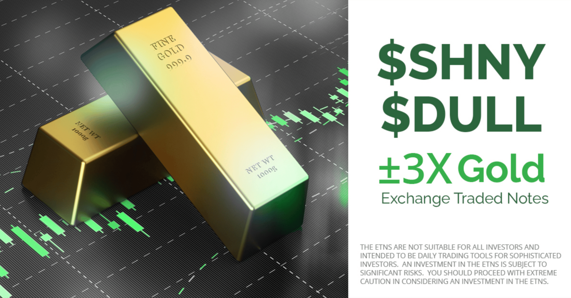 17(b) Disclosure: This message is a paid advertisement for MicroSectors Gold 3X Leveraged ETN (SHNY) and MicroSectors Gold -3X Leveraged ETN (DULL). The Street Sheet investor awareness services, including newsletters, publications or presentations, including web content, are based on data obtained from sources we believe to be reliable but are not guaranteed as to accuracy and are not purported to be complete. As such, the information should not be construed as advice designed to meet the particular investment needs of any investor. Any opinions expressed in The Street Sheet publications or presentations, including web content subject to change. The Street Sheet and its affiliates may buy and sell shares of securities or options of the issuers mentioned on this website at any time. The Street Sheet is a research service not owned or managed by registered brokers and therefore this site does not make any investment recommendations. The information contained herein is not intended to be used as the basis for investment decisions and should not be construed as advice intended to meet the particular investment needs of any investor. The information contained herein is not a representation or warranty and is not an offer or solicitation of an offer to buy or sell any security. To the fullest extent of the law Tag The Flag LLC dba The Street Sheet our specialists, advisors, and partners will not be liable to any person or entity for the quality, accuracy, completeness, reliability or timeliness of the information provided, or for any direct, indirect, consequential, incidental, special or punitive damages that may arise out of the use of information provided to any person or entity (including but not limited to lost profits, loss of opportunities, trading losses and damages that may result from any inaccuracy or incompleteness of this information). Stock market investing is inherently risky. Tag The Flag LLC dba The Street Sheet is not responsible for any gains or losses that result from the opinions expressed in newsletters, publications or presentations, including web content that it publishes electronically or in print. We strongly encourage all viewers to conduct their own research before making any investment decision. For more information on stock market investing, visit the Securities and Exchange Commission ("SEC") at www.sec.gov or the Ontario Securities Commission (“OSC”) at www.osc.gov.on.ca. MicroSectors Gold 3X Leveraged ETN (SHNY) and MicroSectors Gold -3X Leveraged ETN (DULL) are clients of Interactive Offers who has contracted Tag The Flag LLC dba The Street Sheet. Through Interactive Offers, MicroSectors Gold 3X Leveraged ETN (SHNY) and MicroSectors Gold -3X Leveraged ETN (DULL) agreed to pay Tag The Flag LLC dba The Street Sheet a one-time $1,500 fee in exchange for this advertisement, sent to its subscribers. Programs provided to subscribers and Companies by Tag The Flag LLC dba The Street Sheet are designed to help small-cap companies communicate their investment characteristics. Tag The Flag LLC dba The Street Sheet investor awareness services include newsletters, publications or presentations, including web content.