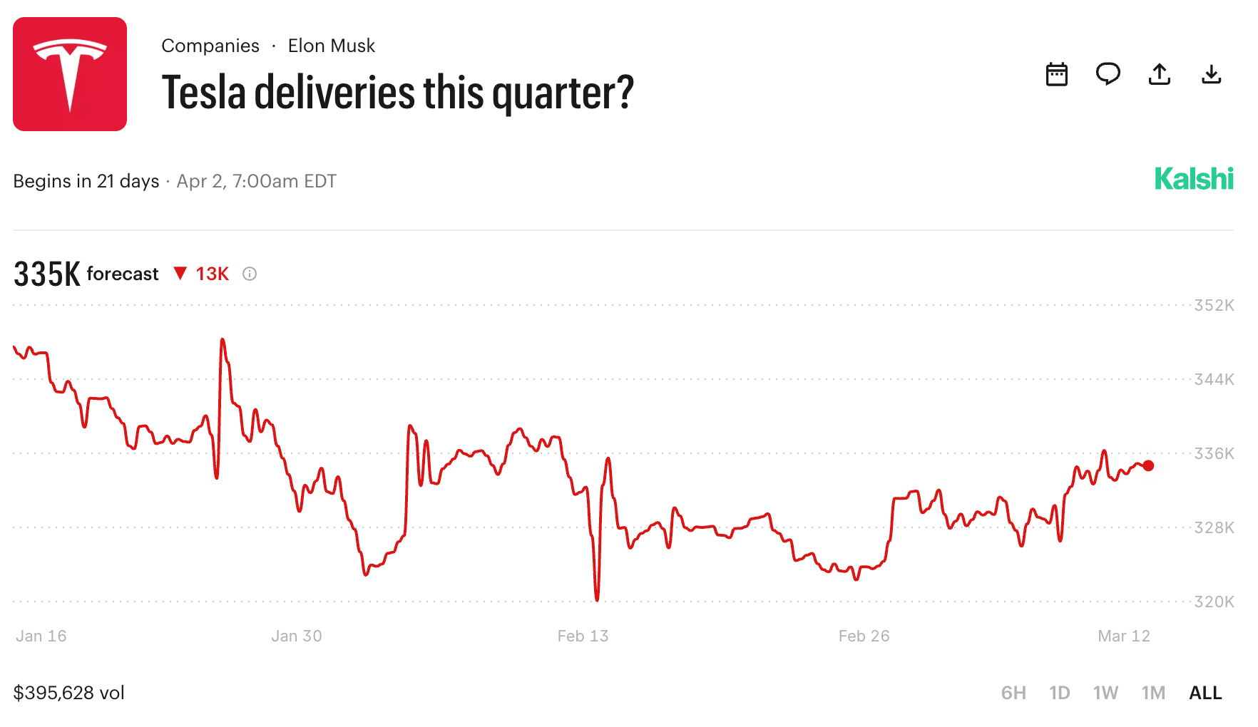 Morgan Stanley and Morningstar are now calling for a third straight annual decline. The cheaper new models are underperforming. The Cybercab is untested at scale. The prediction market is wondering if this quarter will be different.